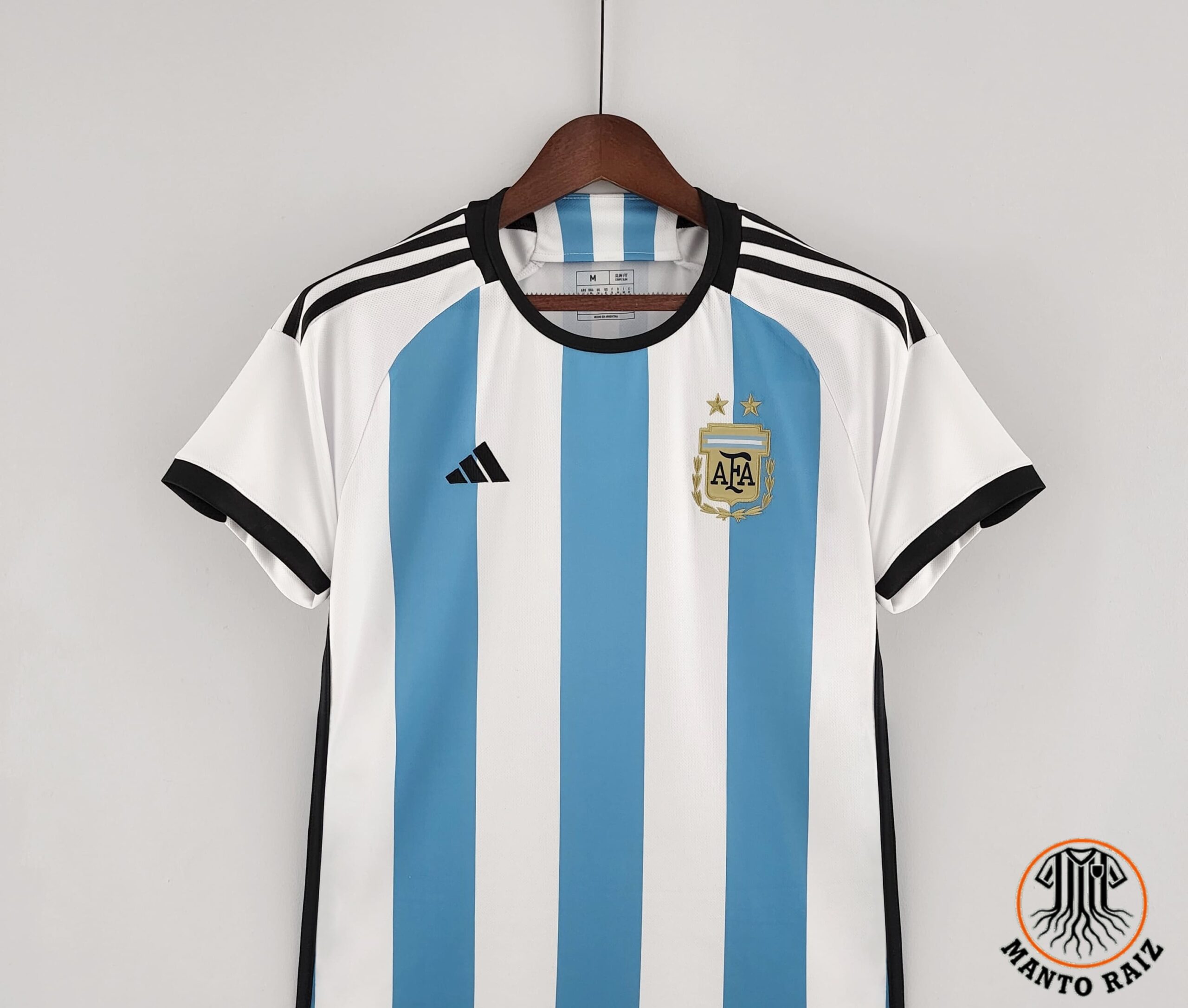 A tradicional combinação em azul celeste e branco que simboliza décadas de história, títulos e vitórias memoráveis em Copas do Mundo e Copas América.