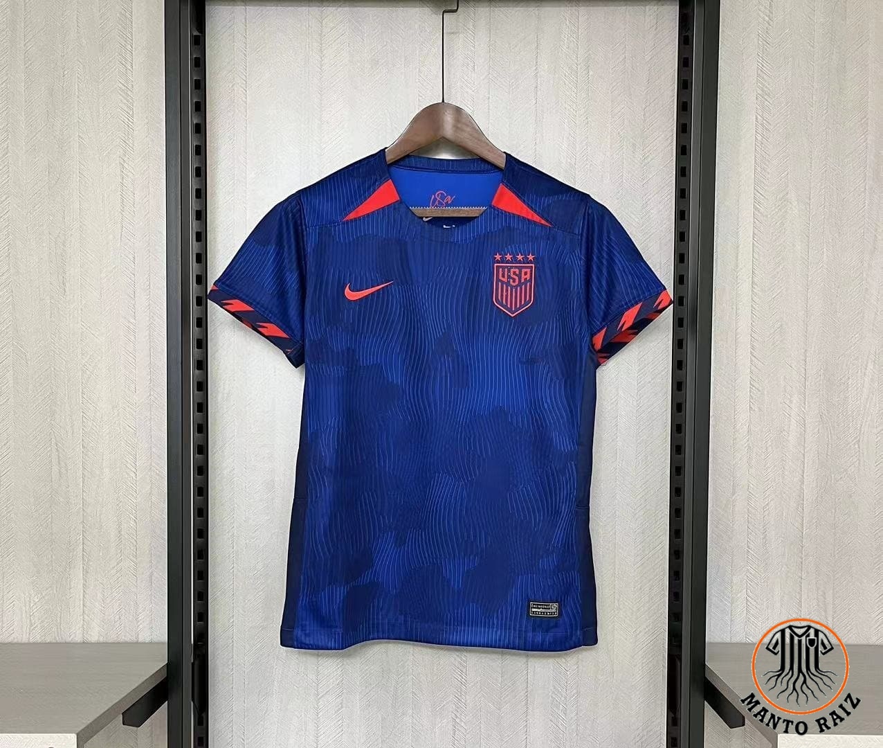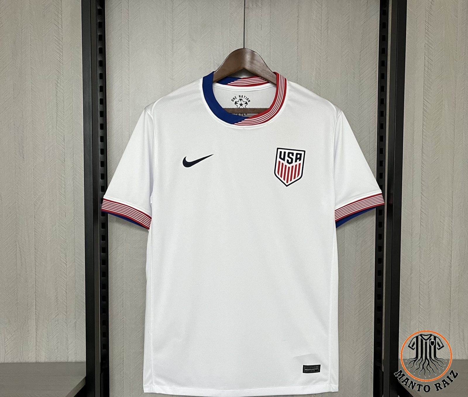 Com as cores vermelho, branco e azul e detalhes marcantes, a camisa simboliza a identidade nacional e o orgulho da seleção americana.